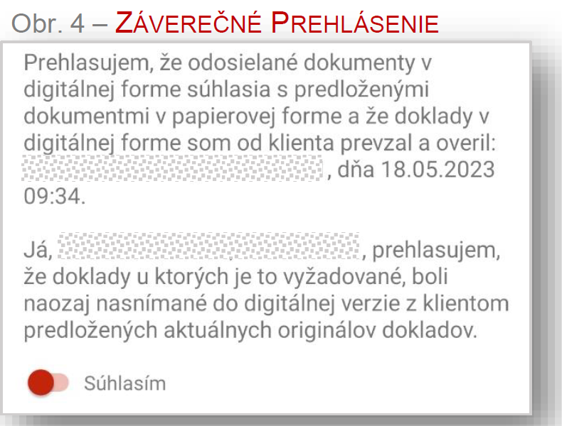 V závere prehlasite, že doklady v digitálnej forme od klienta ste prevzali a overili (viď obr. 4).