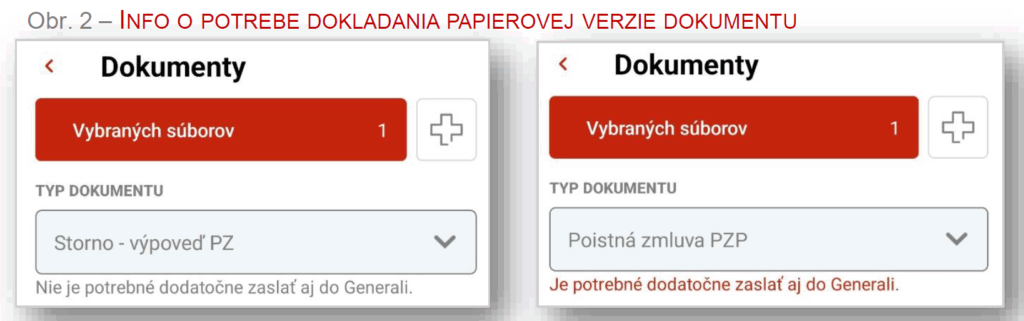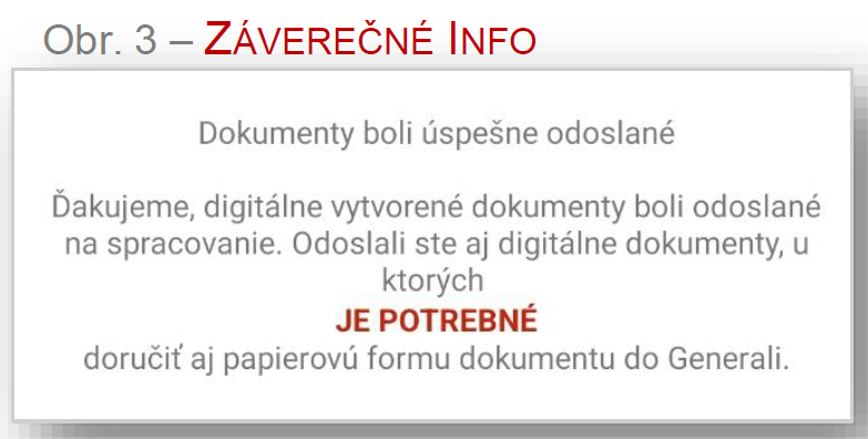 Po odoslaní dokumentov na poslednej obrazovke aplikácie (viď obr. 3) budete ešte raz informovaný či je potrebné doložiť do Generali aj papierovú formu dokumentu alebo nie.